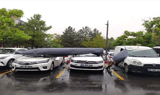 Ankara'da bir otoparka uçak yakıt tankı parça isabet etti. 3 araç hasar gördü.