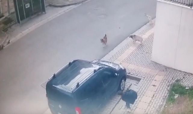 Bursa'nın Orhangazi ilçesinde kaldırımda yürüyen çocuğun başıboş sokak köpeklerinin saldırısına uğraması güvenlik kamerasınca kaydedildi.