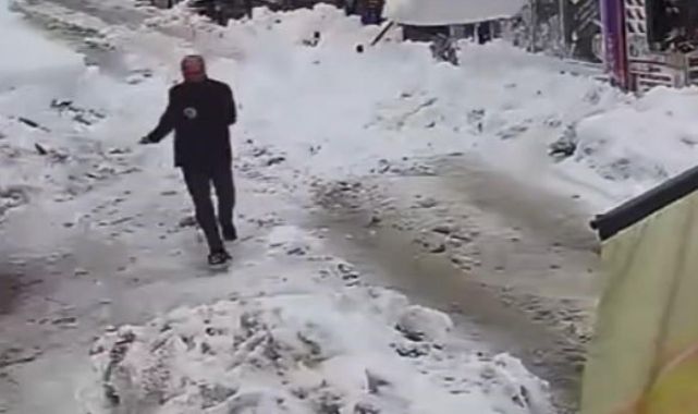 Çatıdan düşen kar kütlesinden son anda kurtuldular