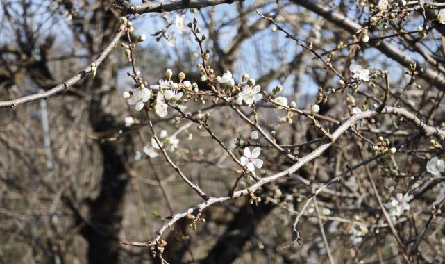 Samsun'un Yakakent ilçesinde hava sıcaklıklarının mevsim normallerinin üzerinde seyretmesi nedeniyle erik ağaçları çiçeklendi.