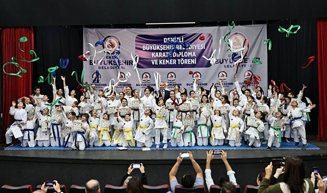 "Denizli'de spor yapmayan kimse kalmayacak" sloganı ile 21 ayrı branşta ücretsiz spor kursu veren Denizli Büyükşehir Belediyesi, karate kursunda başarılı olan 77 küçük sporcu için diploma ve kemer takma töreni düzenlendi. Çatalçeşme Oda Tiyatrosu'nda yapılan programa Denizli Büyükşehir Belediye Başkanı Osman Zolan, Genel Sekreter Yardımcısı Ömer Faruk Özer, Sosyal Hizmetler Dairesi Başkanı Süleyman Akbulut, sporcu aileleri ile kursiyerler katıldı. Büyükşehir Belediyespor Karate Takımı Antrenörü Muhammet Kaya, karakterin kazanılan madalyalardan daha önemli olduğunu ifade ederek, minik sporculara ne olursa olsun mücadeleden vazgeçmemeleri çağrısında bulundu, kendilerine her türlü imkanı sunan Başkan Zolan'a teşekkür etti. Karate kursu öğrencisi Ceylin Sağ ise, 12 yaşında karate kursuyla tanıştığını belirterek, "Spora başlarken okul ve spor kursunu birlikte yürütemeyeceğimi söylediler. Haftada 4 gün antrenman yapmış olmama rağmen LGS'de 500 tam puan üzerinden 498 puan aldım. Karate bana saygı, disiplin ve birçok şeyi öğretti. Şahsım ve arkadaşlarım adına Osman Zolan Başkanımıza bize verdiği desteklerden dolayı çok teşekkür ediyorum" dedi.
