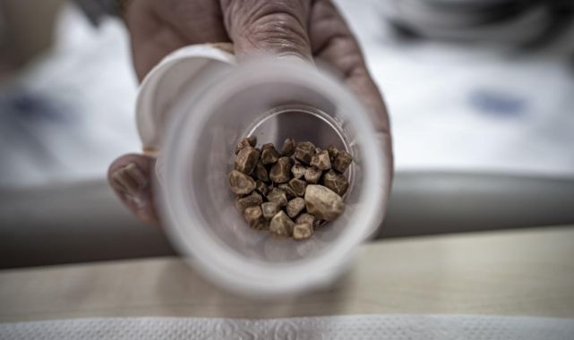 Prof. Dr. Fatih Özkaya, hastada ilginç bir vakayla karşılaştıklarını söyledi.Anatomik olarak sağ tarafında çift üreter kanalı olan hastanın kanallarından birinde çok sayıda taş bulunduğunu anlatan Özkaya, "Bu hastada sıra dışı olan şey, böbrek ve mesane arasındaki üreter dediğimiz kanalda çok fazla taş vardı. Bu taşları açık ameliyat ya da lazerle kırmak yerine laparoskopik (kapalı) yöntemle yapıp tüm taşları temizlemeyi amaçladık. Ameliyat başarılı geçti. Tüm taşları temizledik ve teker teker saydık, irili ufaklı 51 taş çıkardık." dedi.Özkaya, radyolojik görüntülerde bu kadar taşın görülmediğini, hastanın üreter kanalını açınca taş yoğunluğuyla karşılaştıklarını dile getirdi."Üreterde bu kadar çok sayıda taş daha önce hiç görmedim"