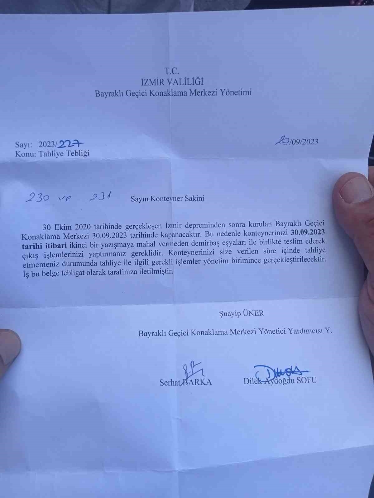 İzmir'deki konteyner kentin kapanma kararına depremzedelerden tepki