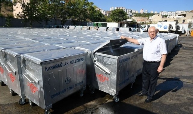 Uzundere'deki Temizlik İşleri Müdürlüğü'ne giderek konteynerleri inceleyen Karabağlar Belediye Başkanı Muhittin Selvitopu, belirlenen program doğrultusunda yeni konteyner alımlarının devam ettiğini söyledi. Son olarak 500 konteyner satın alındığını ve bunların ilçenin farklı noktalarına yerleştirildiğini belirten Başkan Selvitopu, "Temizlik araç gereç filomuzu ardı ardına yaptığımız yatırımlarla güçlendiriyoruz. Geçen haftalarda hizmete koyduğumuz 4 yeni çöp kamyonuyla filomuz oldukça gençleşmişti. Yeni konteynerlerle de hizmetlerimiz daha sağlıklı verilecek. 500 bin insanımızın yaşadığı Karabağlar'ı daha temiz tutmak için çalışmaya devam edeceğiz" dedi.