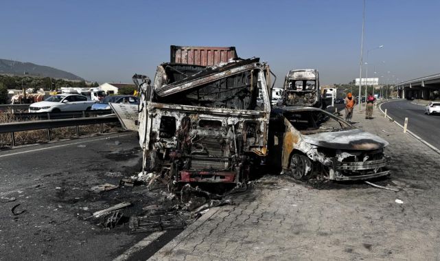 Bornova’da kontrolden çıkan tırın, otomobil ve minibüsle çarpışması sonucu yangın çıktı, yaralanan 5 kişi hastaneye kaldırıldı.