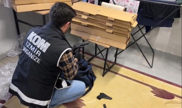 İzmir Cumhuriyet Başsavcılığı, silah ticareti ve imalatı yaparak suç örgütlerine temin ettikleri gerekçesiyle 17 kişi hakkında gözaltı kararı verdi.İl Emniyet Müdürlüğü Organize Suçlarla Mücadele ile İstihbarat şubeleri ekipleri, şüphelileri yakalamak için belirlediği ev, iş yeri, depo ve atölyelerden oluşan 26 adrese eş zamanlı baskın düzenledi.Operasyonda, 102 tabanca, 59 tabanca şarjörü, 14 tüfek, 3 bin 709 tabanca mermisi ve 192 tabanca sürgüsü ele geçirildi.Gözaltına alınan 15 şüphelinin emniyetteki işlemleri devam ediyor.Ekipler 2 zanlıyı yakalanmak için çalışmalarını sürdürüyor.