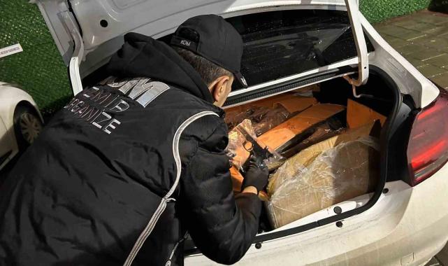 Edinilen bilgiye göre; İzmir Organize Suçlarla Mücadele Şube Müdürlüğü, Kaçakçılık Suçlarıyla Mücadele Şube Müdürlüğü ve İstihbarat Şube Müdürlüğü ekipleri, yapılan çalışmalar neticesinde M.E. ve B.A. kontrolündeki iki aracın iller arası şüpheli seyirlerini tespit etti.