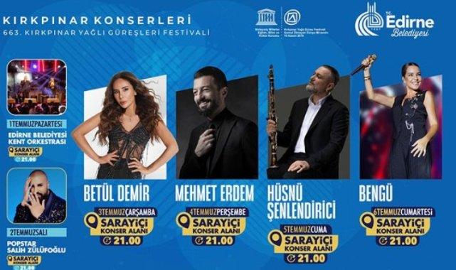 Kırkpınar Güreşleri'nin resmi açılış programı ise aynı gün saat 18.30'da Sarayiçi Er Meydanı'nda gerçekleştirilecek. Ayrıca 1 Temmuz Cuma akşamı Sarayiçi Konser Alanında, ünlü sanatçı Hüsnü Şenlendirici konser verecek.