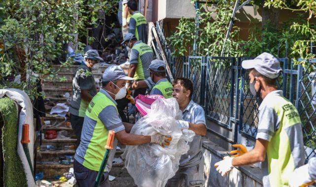 Yeşilyurt Mahallesi'nde 4 katlı bir apartmanın içerisinde ve çevresinde biriken atıkların kokuya neden olması üzerine vatandaşlar belediyeye ihbarda bulundu.Şikayet üzerine harekete geçen ekipler, kullanılamaz hale gelen, sağlık ve görüntü yönünden çevreyi tehdit eden apartmanın temizliği öncesinde gerekli güvenlik önlemlerini aldı.