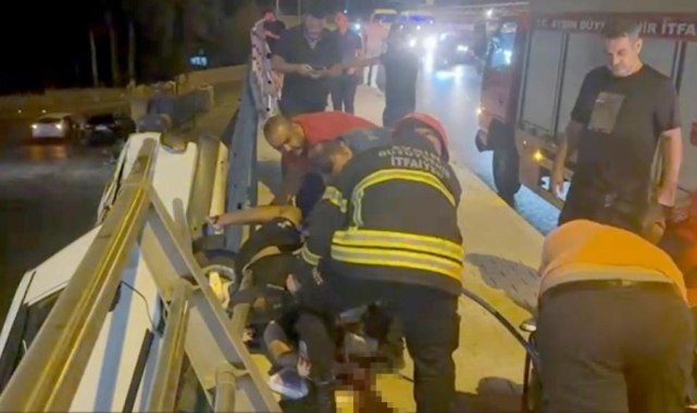 Aydın'ın Kuşadası ilçesinde kontrolden çıkan otomobil, demir korkuluklara çarparak uçurumda asılı kalan araçtan fırlayan sürücü, vücuduna saplanan demir korkulukla hastaneye kaldırılırken, burada yapılan tüm müdahalelere rağmen hayatını kaybetti.